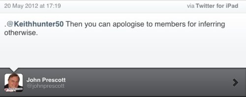 Then John Prescott deigns to make an appearance, in a tweet which curiously disappeared… But not before we got a screenshot…