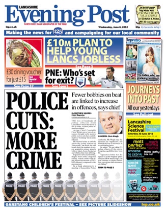 The Jubilee weekend would keep the story away from the front cover till today but, as you can see, not forever. And then a tweet or two and the help of the Press Association, and before you know it, it is being quoted by the Shadow Policing Minister, and transformed in no less an organ than the Telegraph to say “Burglary and violent crime is rising in some parts of the country because of the swingeing cuts in police numbers, a police chief has warned.